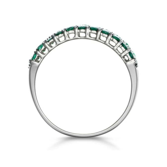 This ravishing emerald and diamond half eternity ring with its three rows of contrasting stones that glimmer side by side simply exudes luxury and glamour. With 0.60CT of emerald set in 18K white gold alongside 0.35CT diamonds, its exceptional beauty makes it a perfect gift or an indulgent treat.