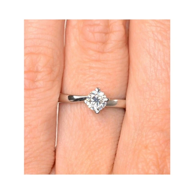 This elegant ring features a 0.50CT E/VS2 Quality Diamond which is held in a four claw twist design to truly highlight the beauty of the diamond. The sparkling diamond and unique claw design are made complete by the platinum band which further enhances this rings simple beauty.