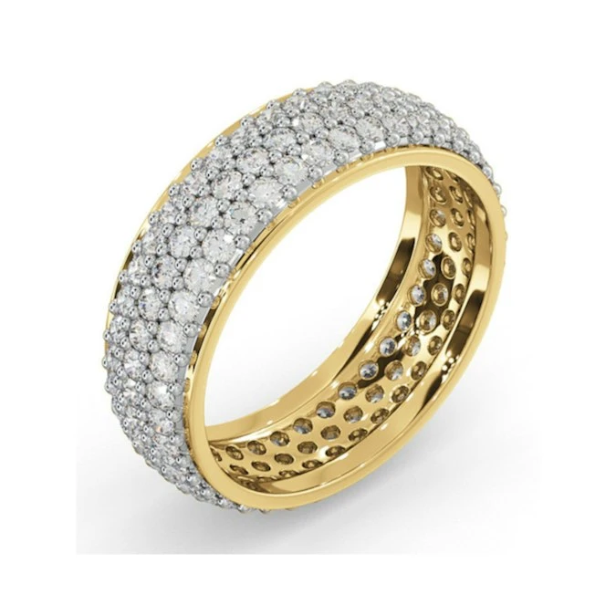 This exceptional Sara eternity ring features 2.00CT of glistening G/VS Quality Diamonds in a pave setting which sparkle brilliantly against the yellow gold band. Eternity rings are traditionally given on the birth of a first child or a special anniversary but they can be given at any time to show your love. You can be certain she will cherish this stunning ring and remember the moment you presented her with it for a lifetime.