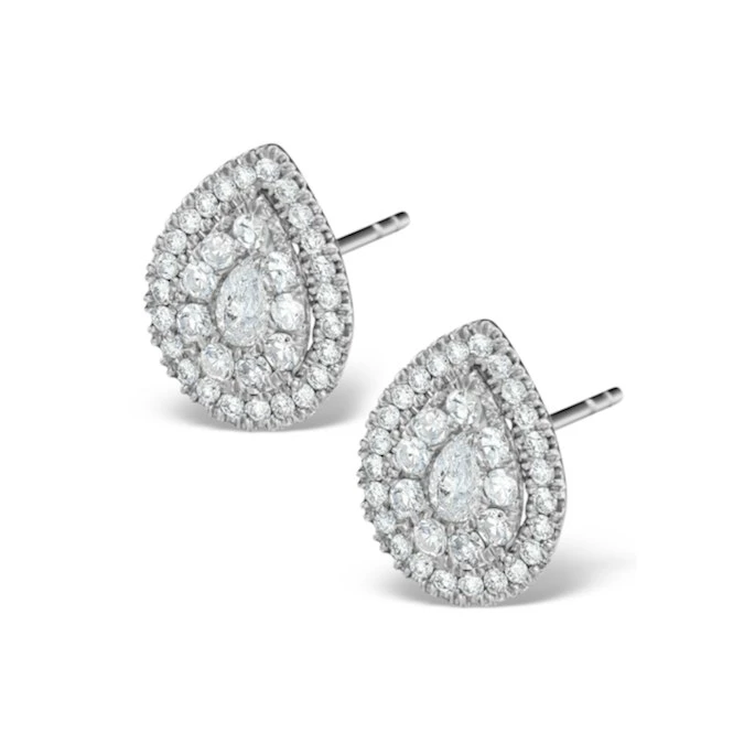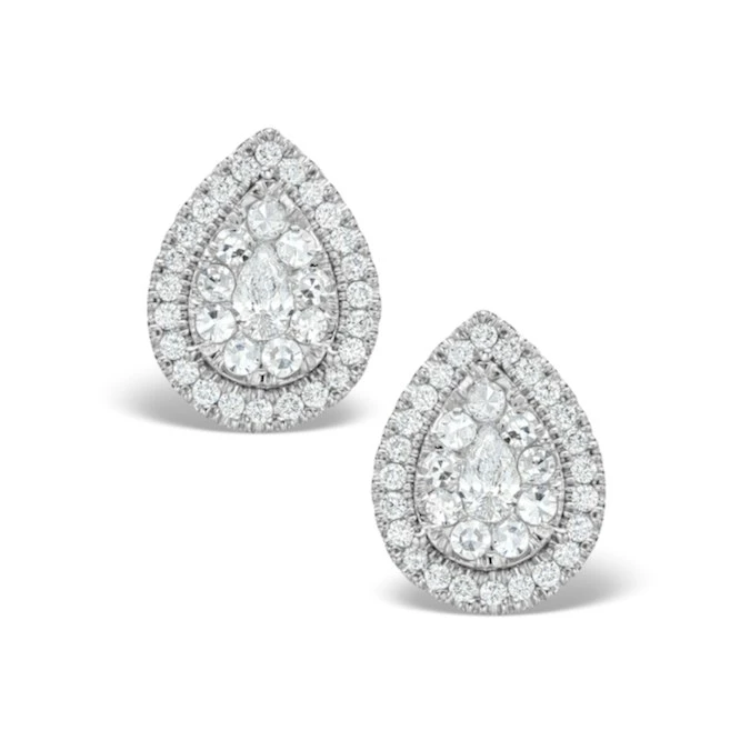 These ultra glamorous earrings would make a stunning gift to mark a special occasion. The earrings feature a collection of glistening round cut H/Si Quality Diamonds weighing a total of 1.20CT which are claw set with 18K white gold. A matching Galileo diamond cluster necklace is also available for those looking for a complete set.