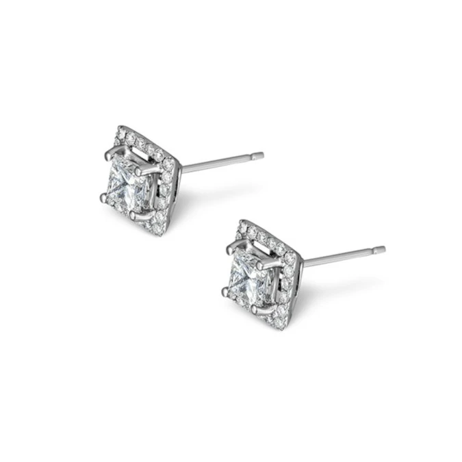 A stunning pair of Diamond Halo Earrings in 18K White Gold. Claw setting. 1.40CT of H/SI quality diamonds. Free UK delivery and a 5 year guarantee.