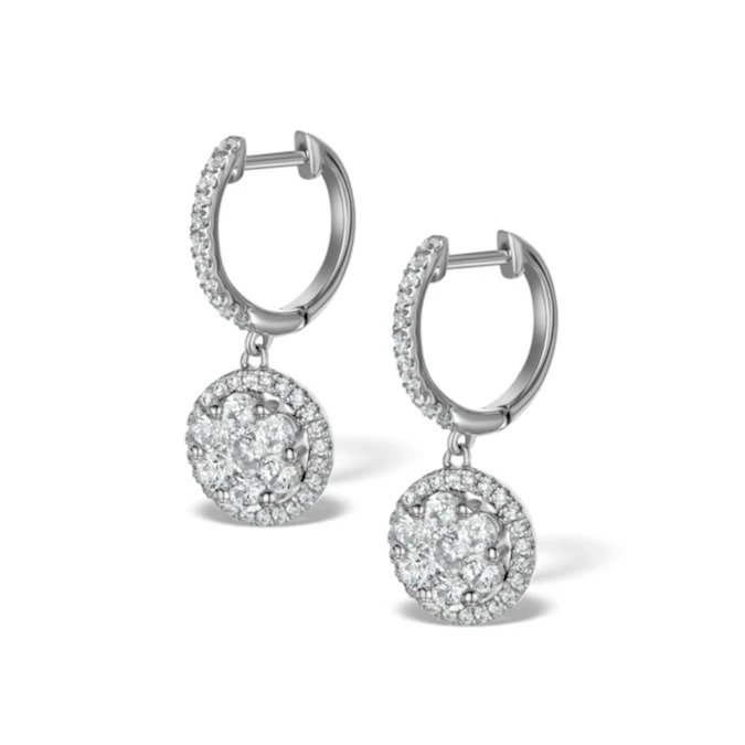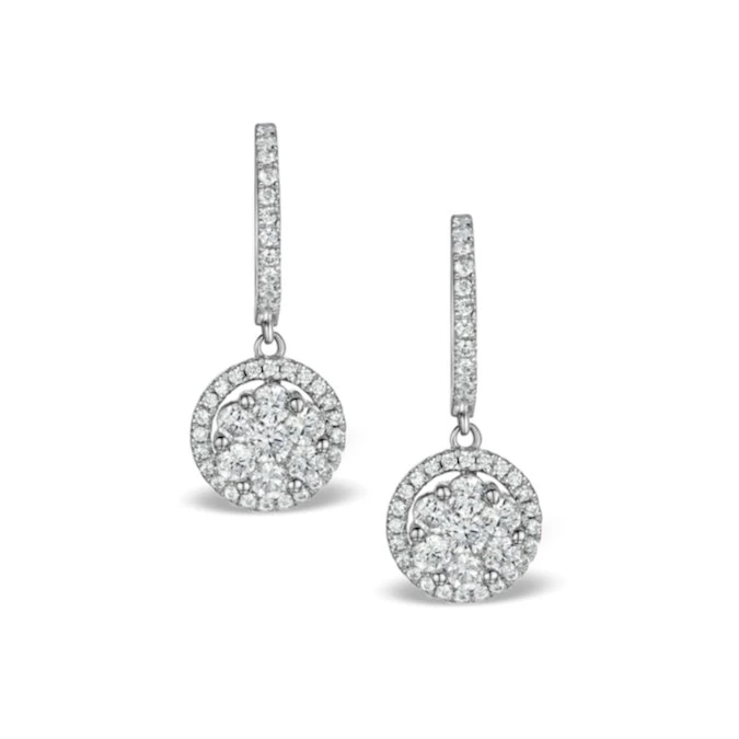 Luxury meets elegance in these spectacular diamond halo drop earrings. Showcasing the finest lab grown diamonds, they are designed to sparkle beautifully each time they catch the light. Guaranteed to make you feel sensational, whatever the special occasion.