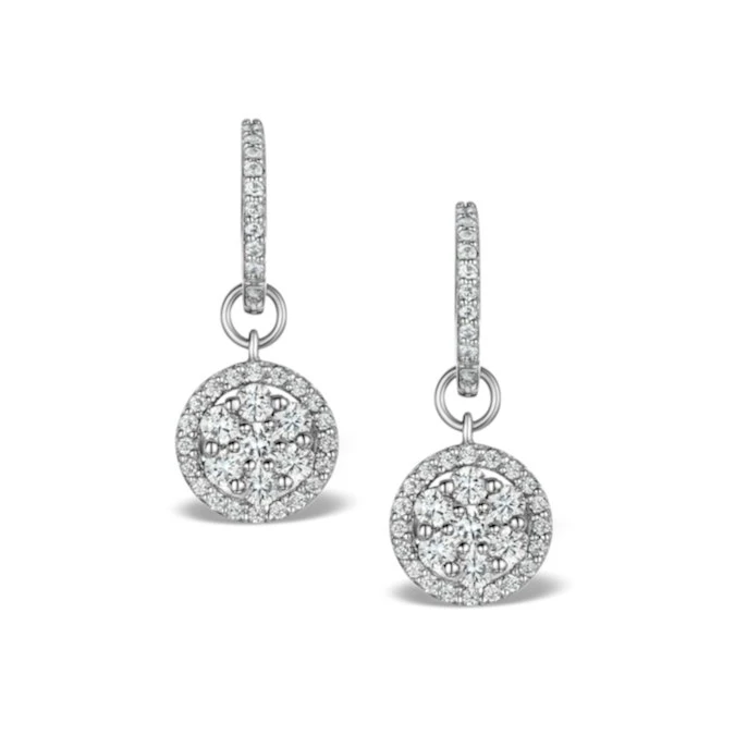Create a look that’s glamorous and sophisticated with these stunning diamond halo drop earrings. Designed with the finest lab grown diamonds, they radiate with unmatched sparkle and fire. The 18K white gold setting is highly polished, giving you a feel of exceptional quality when you wear them.