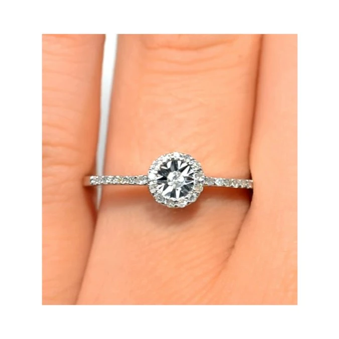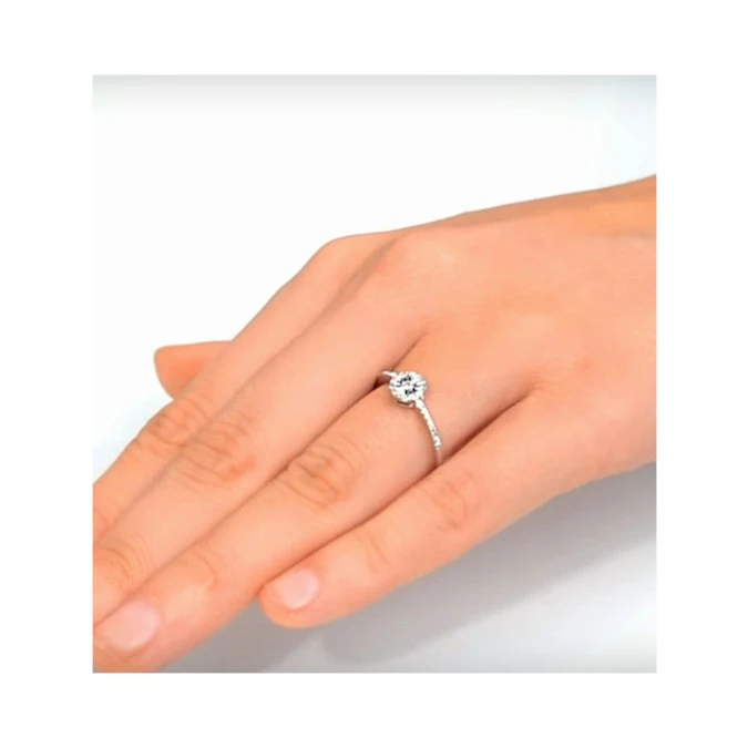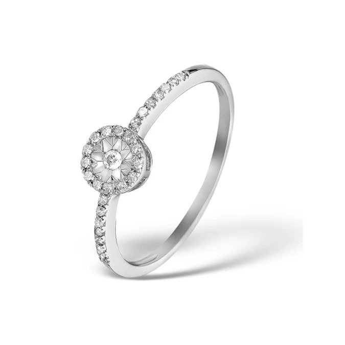 The impact of this exceptional solitaire with diamond shoulder ring is sure to demand attention whenever you wear it. The simple elegance of the 9K white gold band creates the perfect setting for a stunning solitaire that shines brightly like a star in the night sky and a dazzling collection of round cut, claw set, Premium Quality Diamonds.