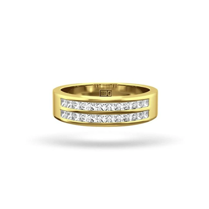 The 0.50CT of princess cut G/Vs Quality Diamonds sparkle beautifully within their channel settings in this gorgeous Holly half eternity ring. The collection of diamonds is showcased in two stunning rows and the ring is made complete by the 18K yellow gold band. If you’re looking for a gift to show how much you love her then this half eternity ring would be a truly romantic present and one she will cherish for years to come.