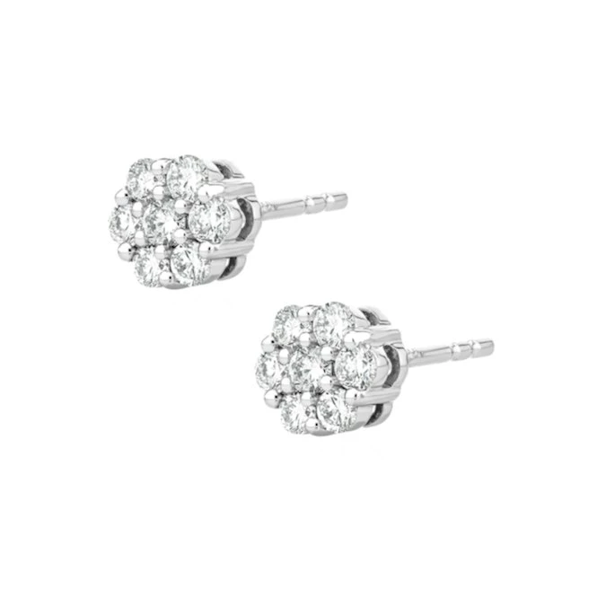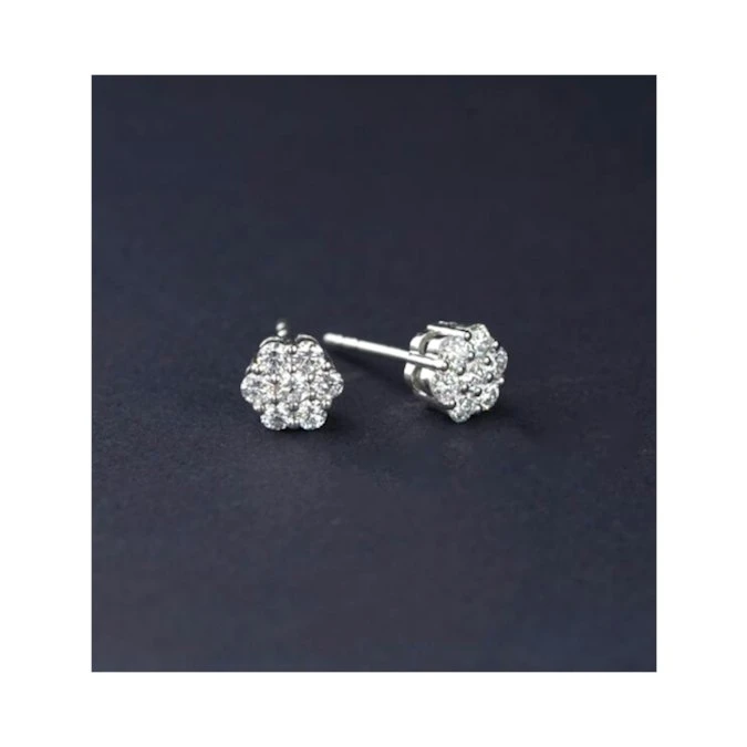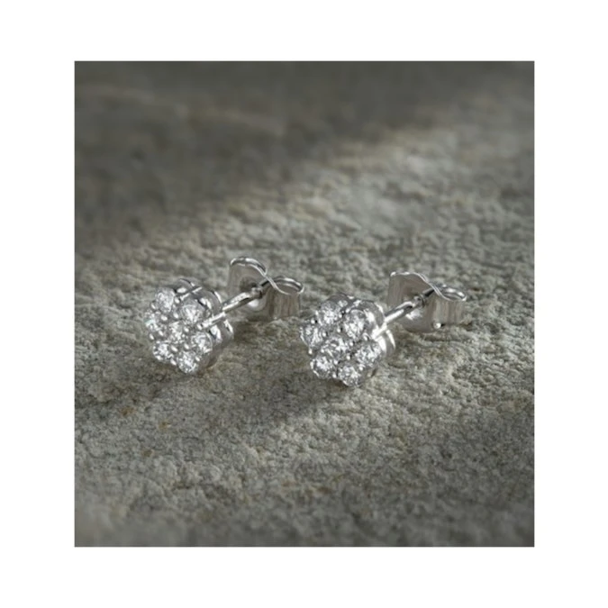 A beautiful certified pair of Diamond Cluster Earrings in 9K White Gold. Claw setting. 0.50CT of H/SI quality diamonds. Free UK delivery and a 5 year guarantee.
