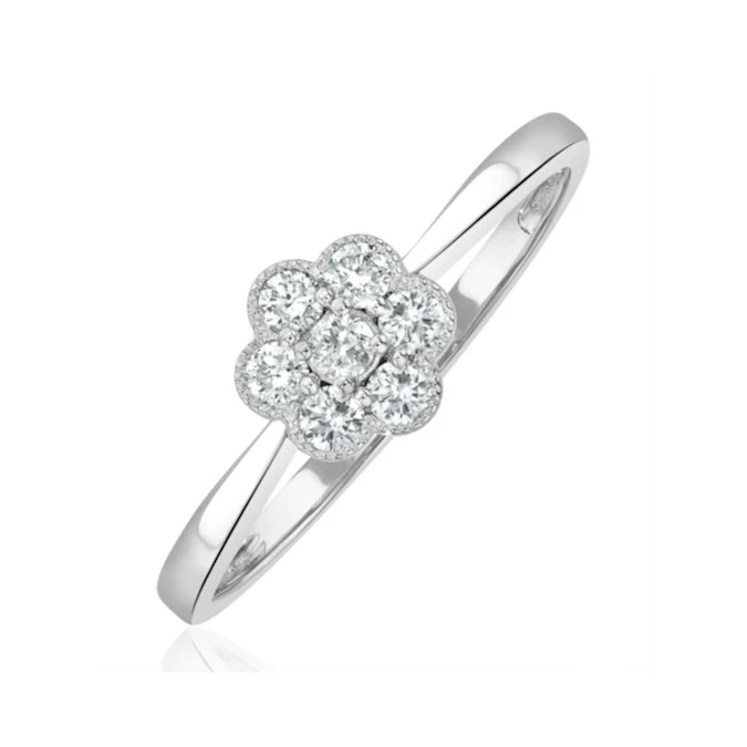 If you’re looking for a romantic jewellery gift, this dainty diamond ring in a floral pattern is truly beautiful. It showcases sparkling lab grown diamonds, the sustainable choice. The white gold setting is beautifully detailed with milgrain edges for a hint of vintage luxury that looks utterly elegant on your hand.