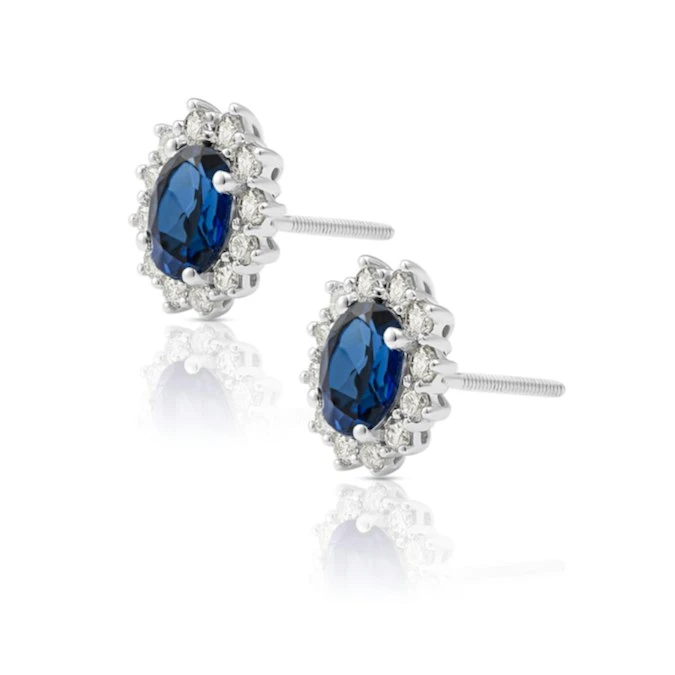 An exceptional pair of Sapphire Earrings in 18K White Gold. Claw setting. 0.50CT of H/SI quality diamonds. Free UK delivery and a 5 year guarantee.