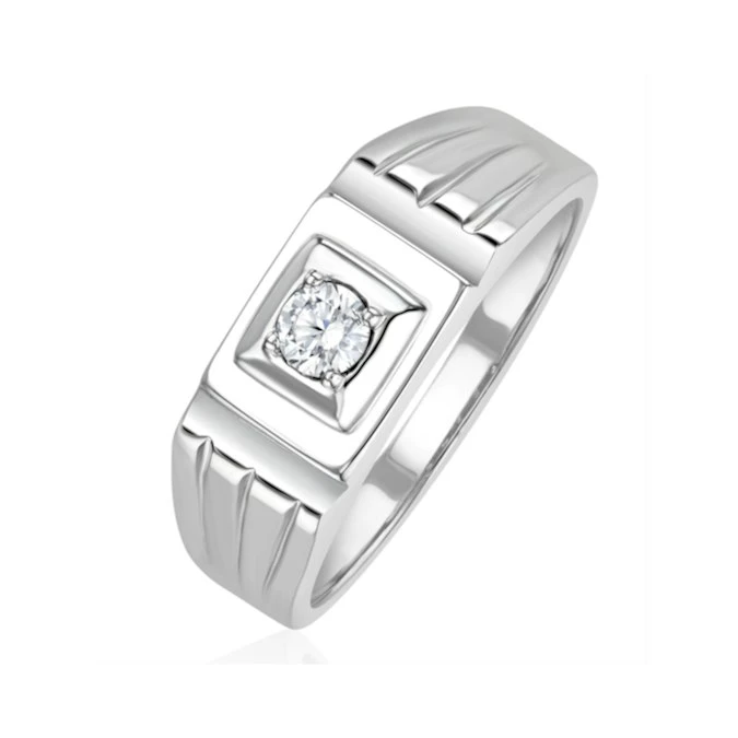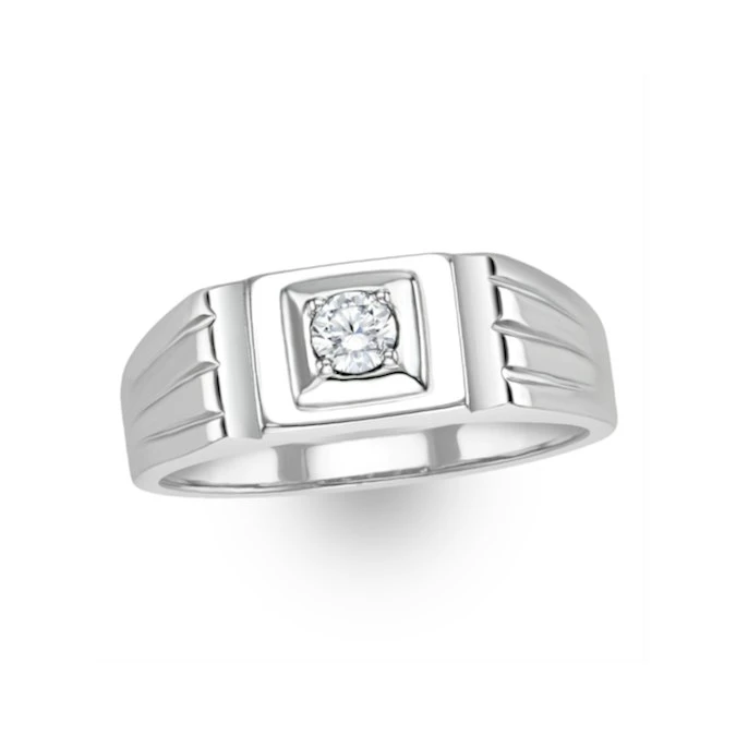 The striking, square face of this elegant men’s ring is studded with a single sparkling, ethical lab grown diamond. Graded at H/Si quality, it offers clean white sparkle that looks superb within the highly polished sterling silver band. A unique ring that he will love showing off.