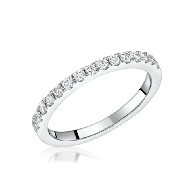 Luxury and romance are beautifully embodied in this sparkling yet simple wedding band from our exclusive Roxy Collection. Its beautiful style has been created with 0.36CT of round brilliant cut diamonds set in the finest UK hallmarked 18K white gold. Handcrafted for a lifetime of happiness, it’s also available with a Roxy engagement ring for a perfectly coordinated bridal look.