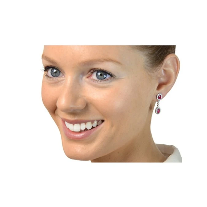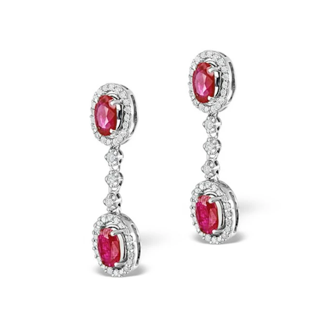 A stunning pair of Ruby Earrings in 9K White Gold. Claw setting. 0.47CT of Premium Quality diamonds. Free UK delivery and a 5 year guarantee.