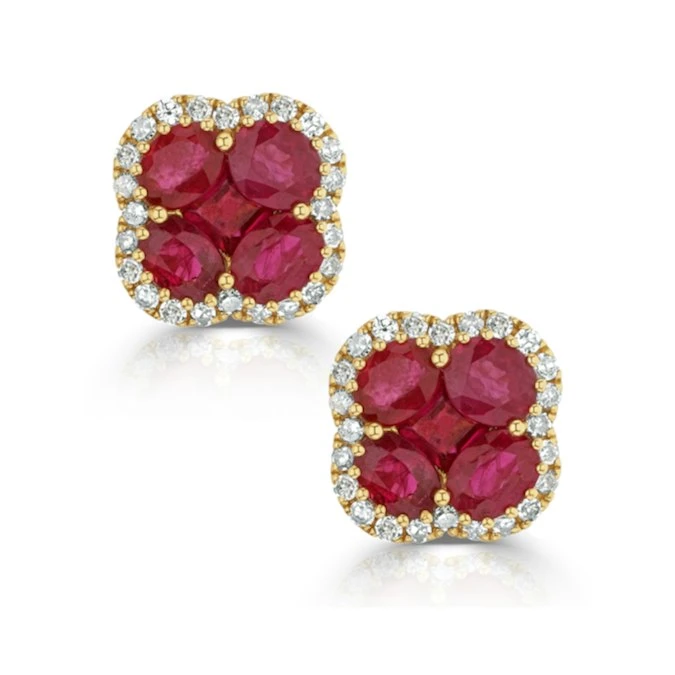 These beautiful ruby earrings elevate any outfit from daytime to evening. The vivid red rubies are surrounded by diamond halos, sparkling beautifully as they catch the light. Set in 18K gold for a sumptuous finish, this is a truly memorable gift for your special occasion.