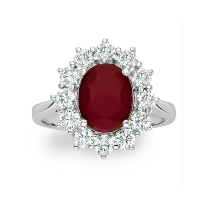 If you’re looking for a special gift for someone you love, this magnificent ruby ring will be a sure success. With a rare and luxurious ruby centre stone that sparkles with exquisite red colour, it looks simply stunning on the hand. The setting is made from polished white gold, and framed with sparkling, sustainable lab grown diamonds that are as ethical as they are beautiful.