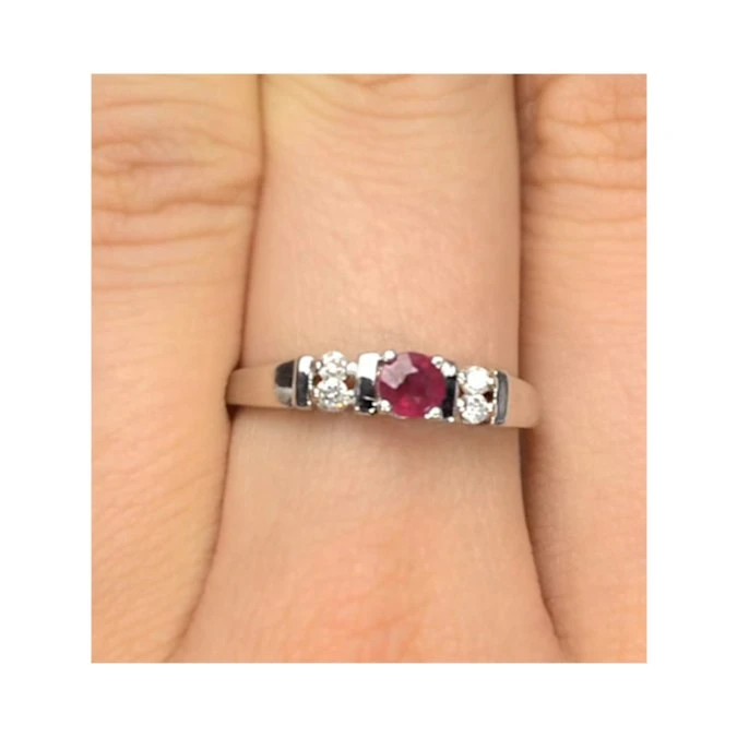This elegant ruby ring is beautifully displayed in fine white gold and accented with four sparkling premium diamonds. The contemporary design really shows off the gorgeous, deep red sparkle of this 3.75mm gemstone. It’s a stunning gift for anybody who loves precious stones – ideal for birthdays, Christmas or Valentine’s.