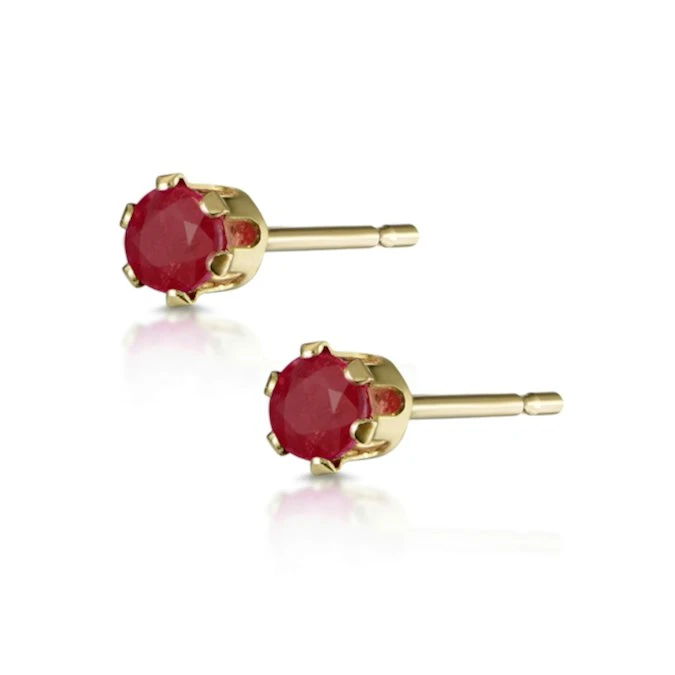 These dainty, gorgeous ruby earrings make a perfect little luxury treat for someone you love. They combine vivid 3mm rubies with a luxurious yellow gold setting, and come with our stylish gift presentation set ready for your special occasion.