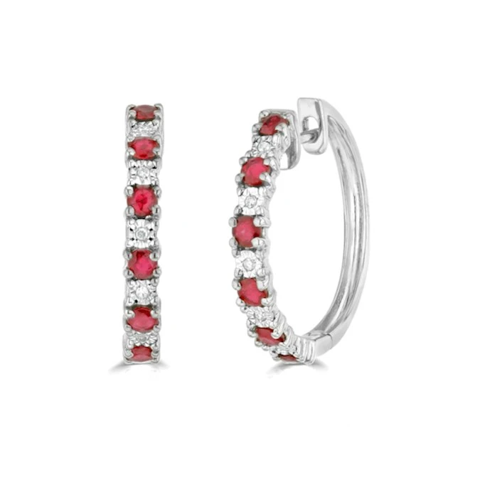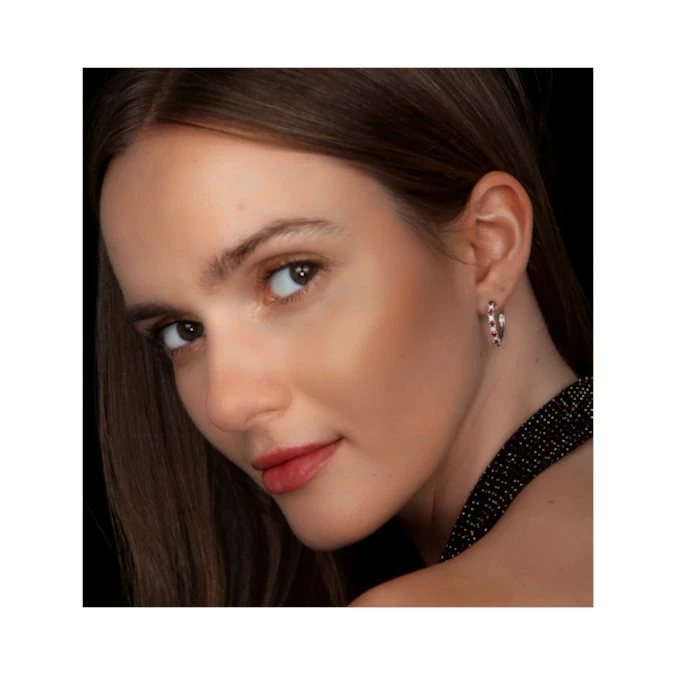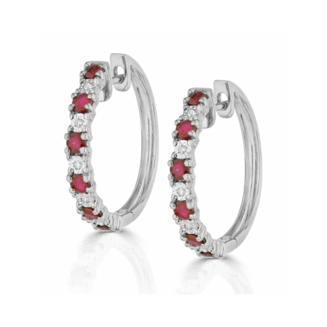 Embodying romance and glamour, these luxurious hoops with rubies and sustainable lab grown diamonds look stunning on. They’re an exquisite alternative to diamond-only hoops, especially if you’re looking to impress someone with a special gift. Set in polished sterling silver that feels great to wear.