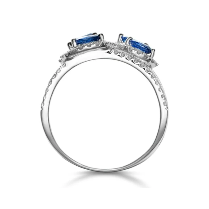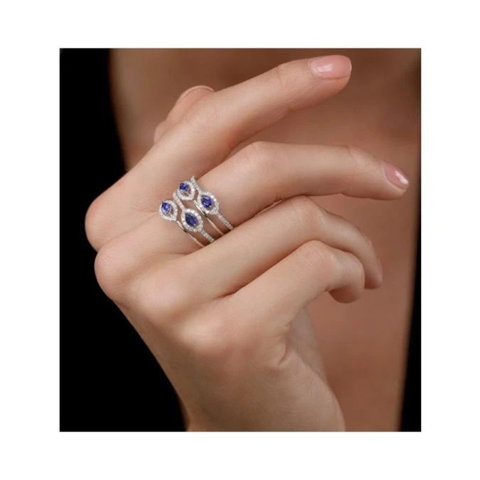 This ravishing four-band sapphire ring showcases exceptional design, elegance and luxury. Its multiple white gold bands dazzle with diamonds, and each features a vivid blue, pear shaped sapphire. A piece that exudes glamour, its exceptional quality and beauty make it the perfect gift or an indulgent treat.