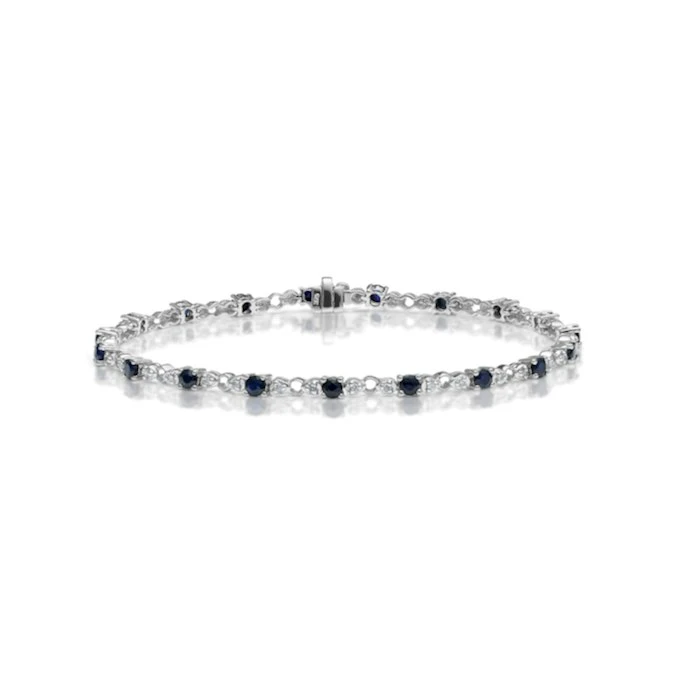 If you’re looking for a special bracelet for someone you love, this stunning sapphire and diamond bracelet makes the perfect gift. The beautifully handcrafted sterling silver setting displays exquisite blue sapphires and sparkling, sustainable lab grown diamonds. A gorgeous luxury gift that will be cherished for years to come.