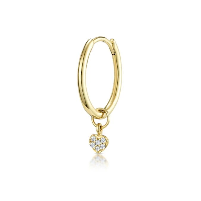 The beautiful shimmer of this diamond charm hoop earring is sure to catch the eye wherever you go. Yellow gold gives a gorgeous contrast to the dainty diamonds. This is a perfect gift idea for a special someone who loves trendy luxury.
