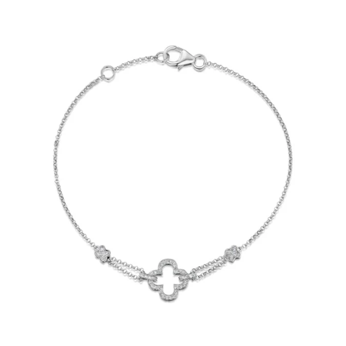 Sparkly and elegant, this diamond four leaf clover bracelet with 0.15CT of premium diamonds is chic and perfectly on trend. Featuring beautiful polished white gold detail, it’s designed with a claw setting for maximum sparkle. A go-to accessory that adds luxury to any outfit.