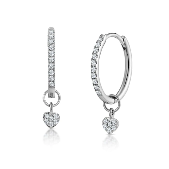 If you need a gift for someone who loves luxurious, contemporary jewellery, these diamond-encrusted Stellato diamond hoops are a perfect choice. The shimmering diamond heart charms on the beautiful white gold huggies give you an unmistakably chic look.