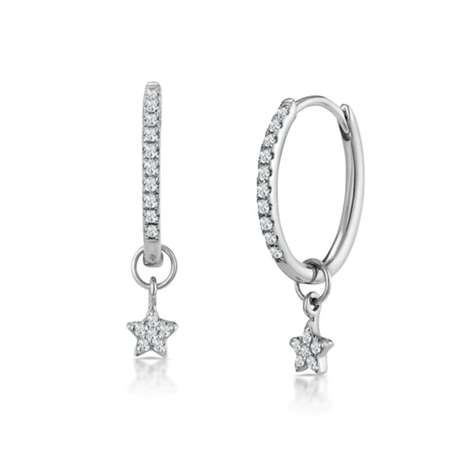 Give her a gift of contemporary luxury with these exquisite earrings. They showcase diamond-encrusted huggie with a diamond star charm, highlighting your features with beautiful shimmer. Handcrafted in white gold for a polished look.