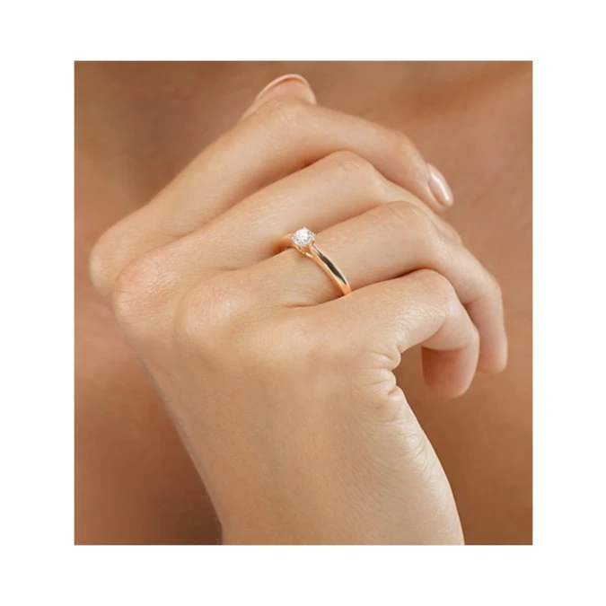 This classic engagement ring in yellow gold looks beautiful, sparkling and sophisticated on the hand. The stunning lab grown diamond solitaire is a sustainable choice. Its quality grade is H/Si which means it creates exquisite, white sparkle and allows you to propose with confidence.