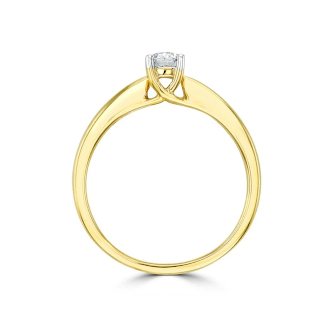 This classic engagement ring in yellow gold looks beautiful, sparkling and sophisticated on the hand. The stunning lab grown diamond solitaire is a sustainable choice. Its quality grade is H/Si which means it creates exquisite, white sparkle and allows you to propose with confidence.